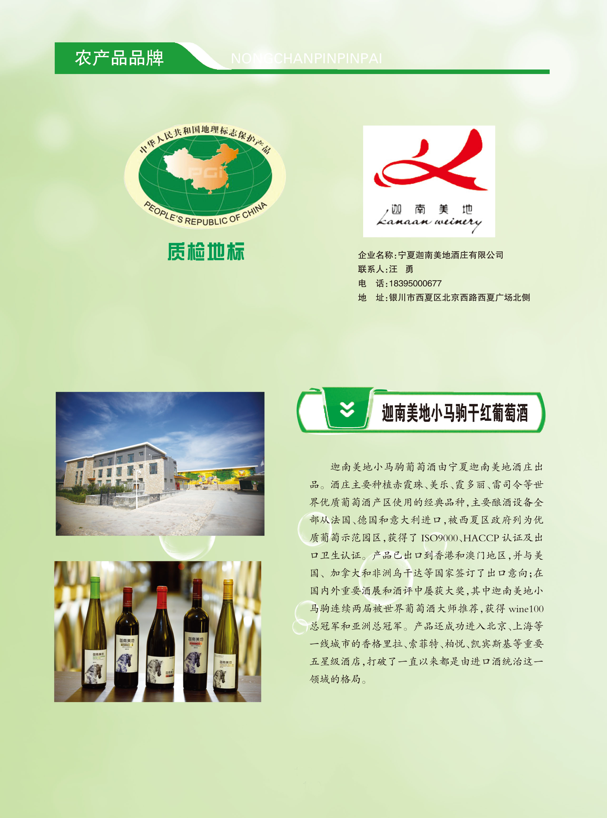 首届宁夏优质特色农产品品牌—迦南美地小马驹干红葡萄酒