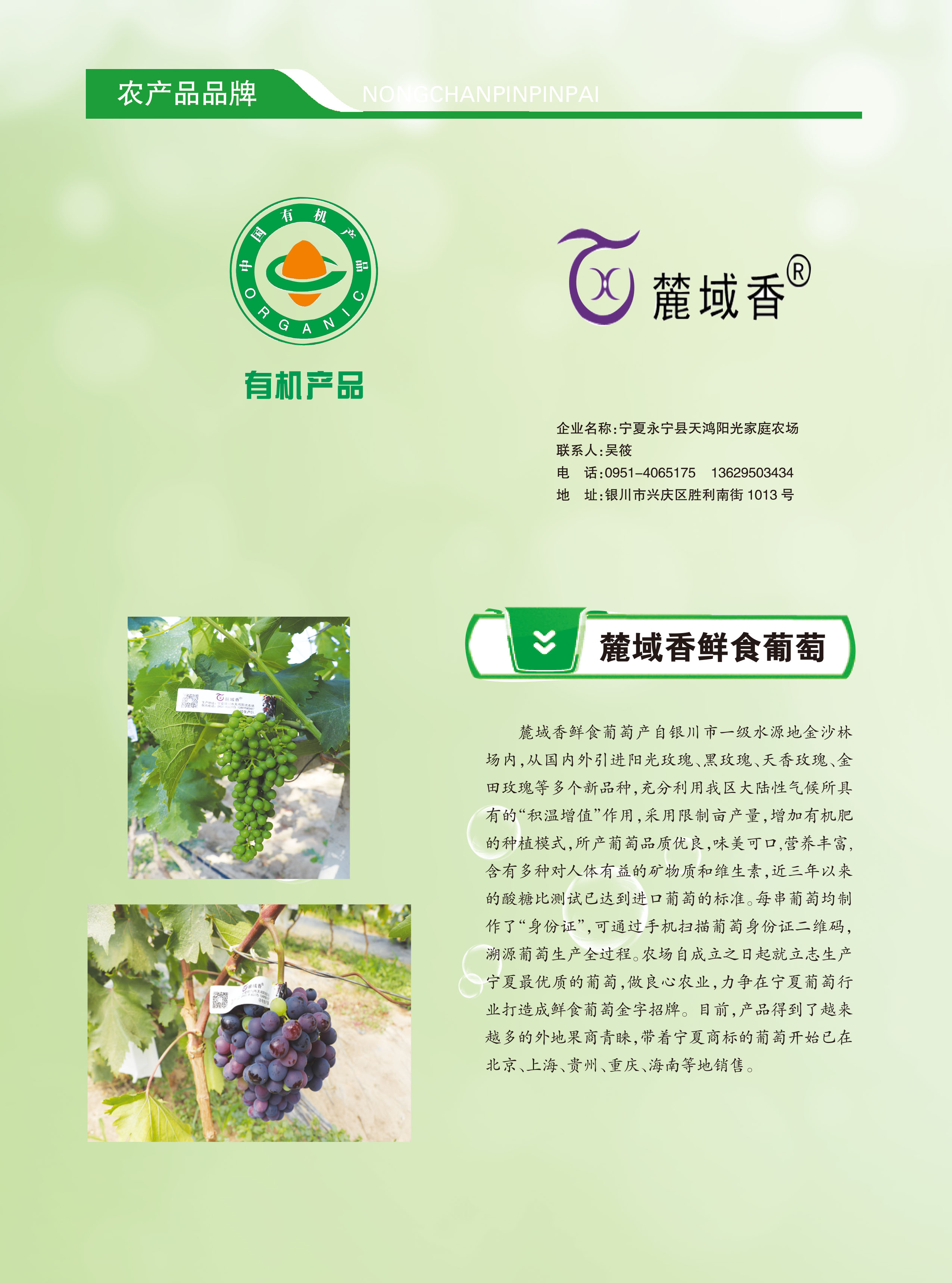 首届宁夏优质特色农产品品牌—麓域香鲜食葡萄