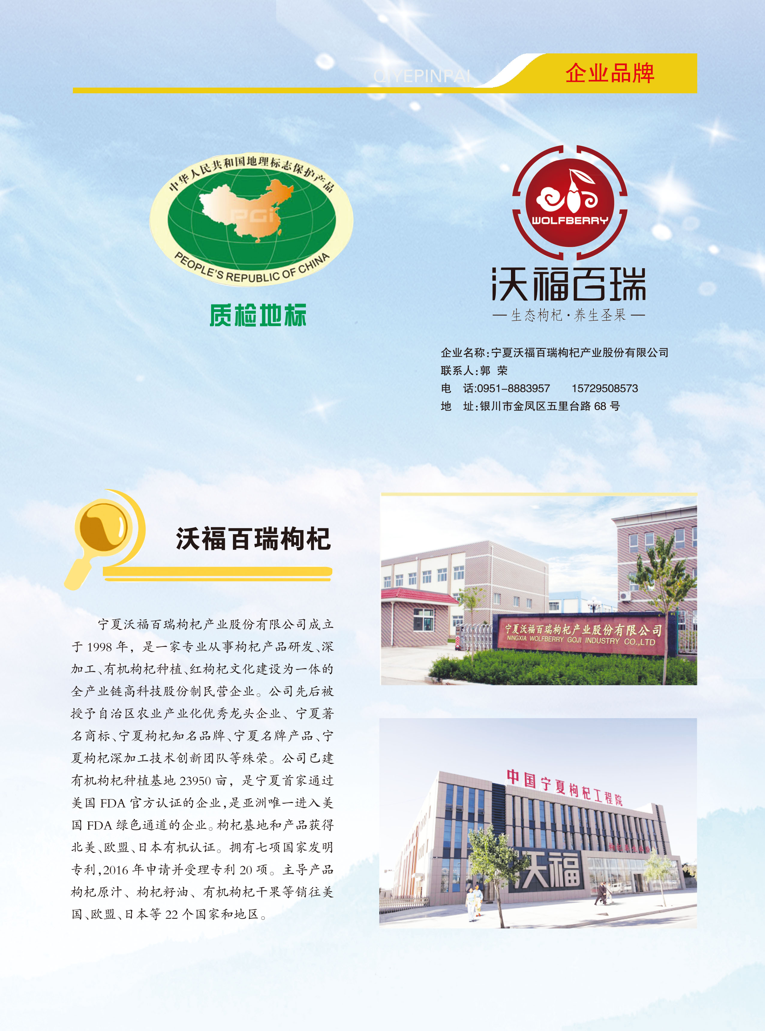 首届宁夏农业企业品牌—宁夏沃福百瑞枸杞产业股份有限公司