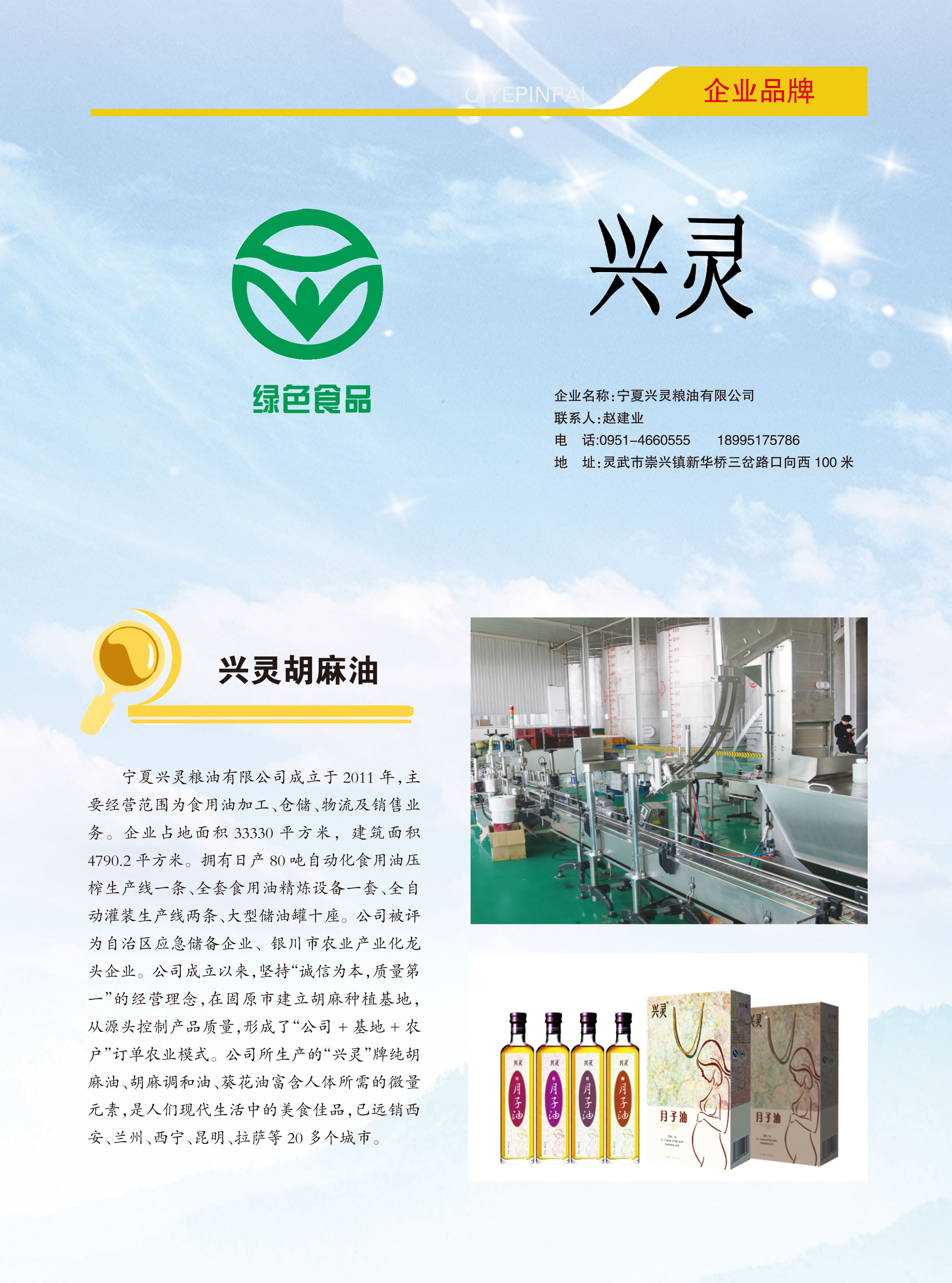 首届宁夏农业企业品牌—宁夏兴灵粮油有限公司