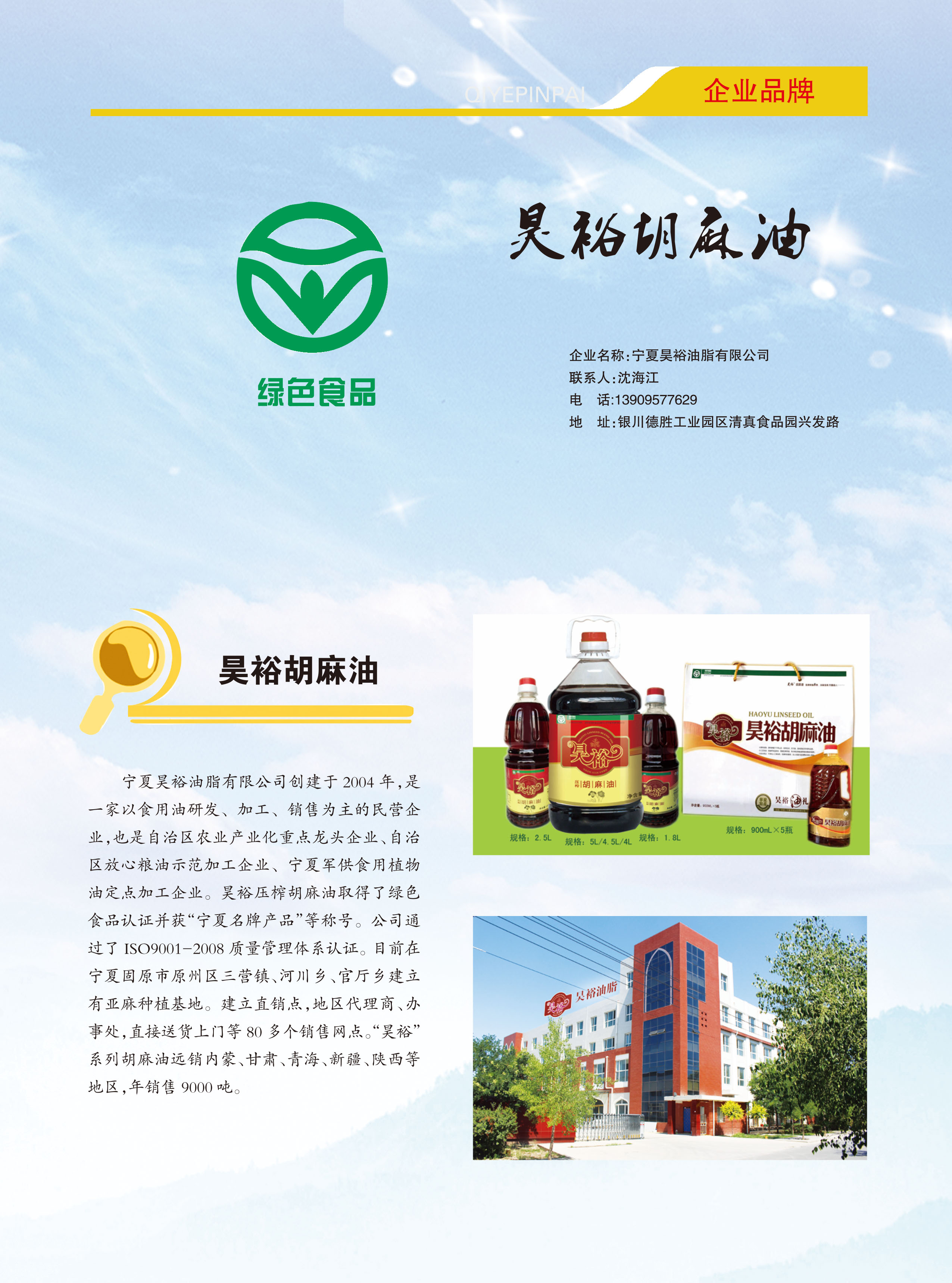 首届宁夏农业企业品牌—宁夏昊裕油脂有限公司