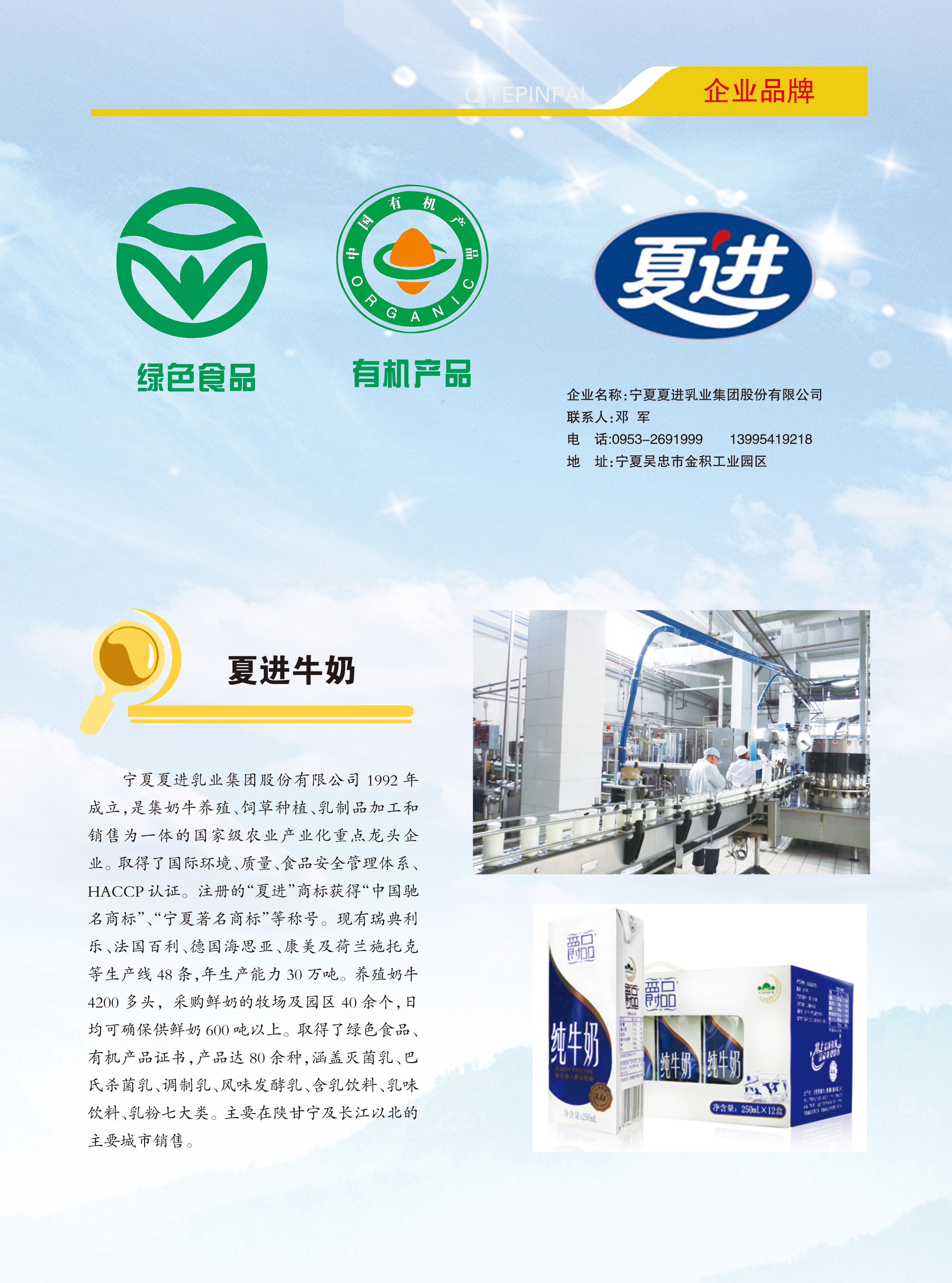 首届宁夏知名农业企业品牌—宁夏夏进乳业集团股份有限公司