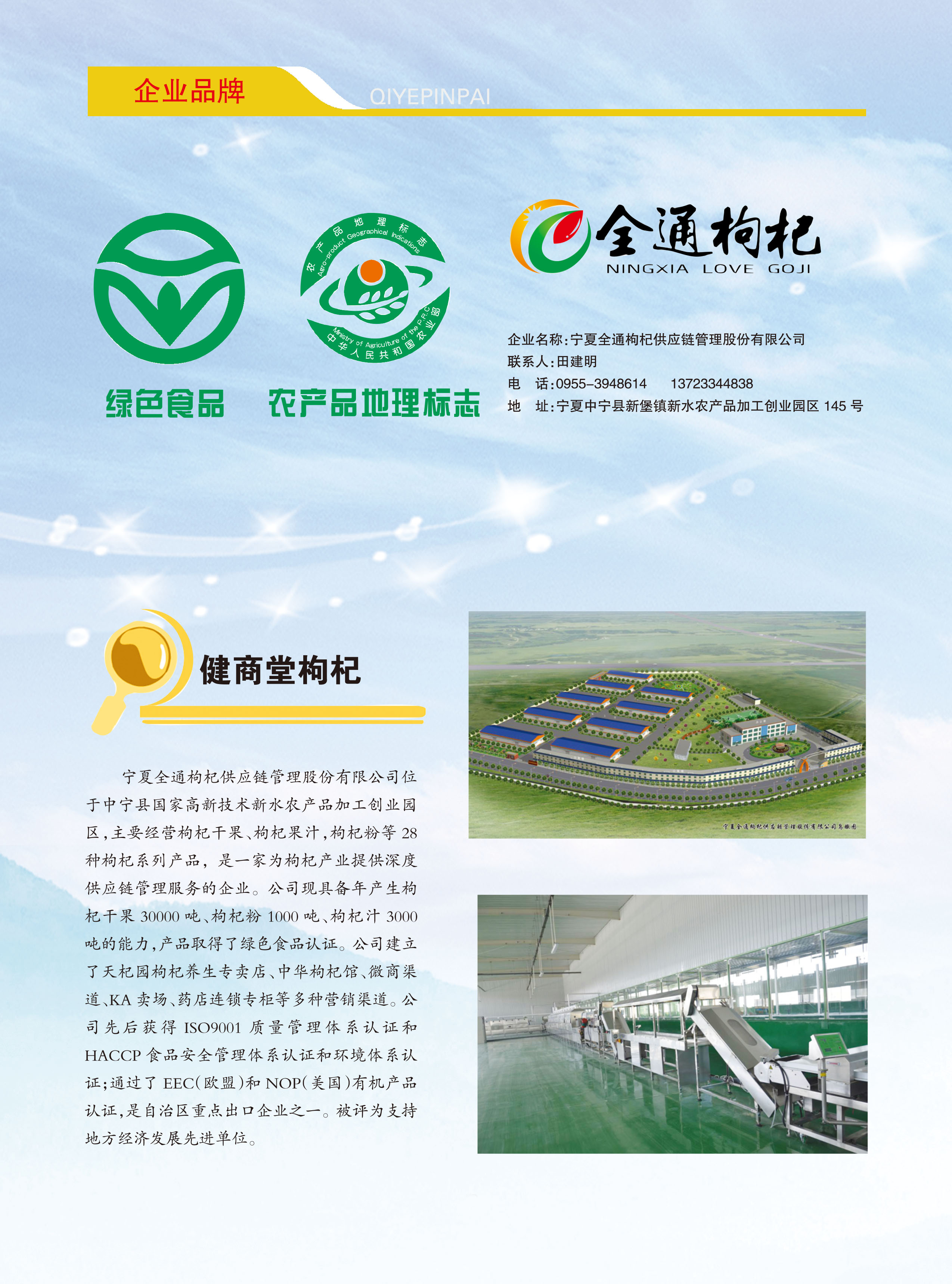 首届宁夏知名农业企业品牌—宁夏全通枸杞供应链管理股份有限公司