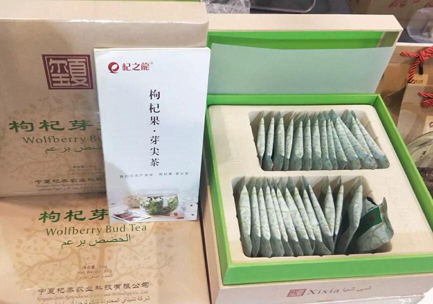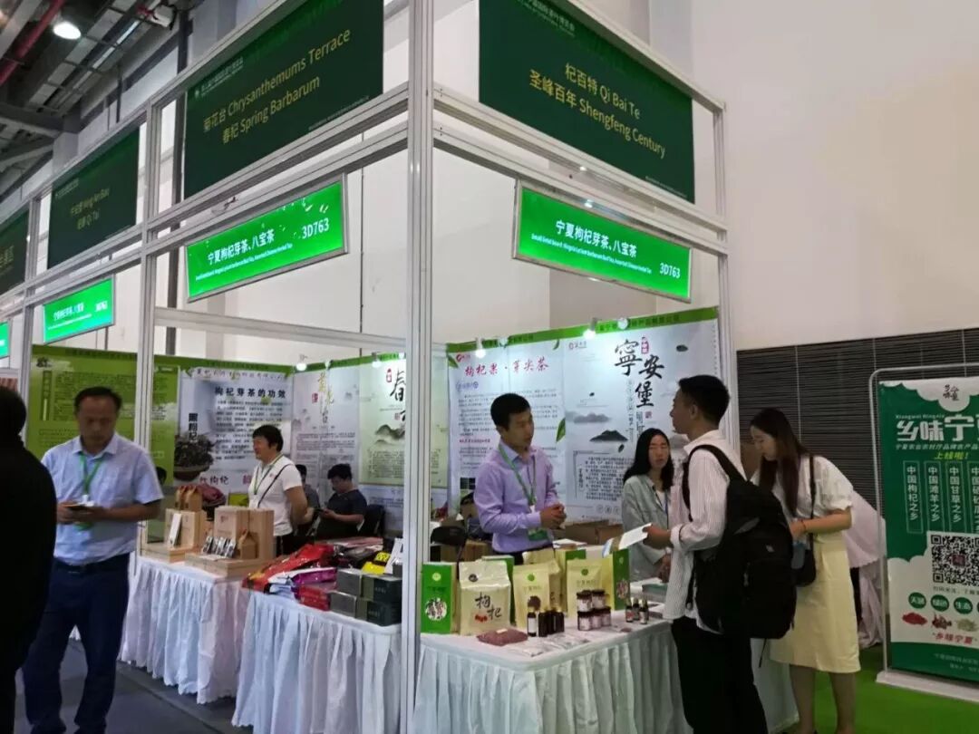 在第三届届茶博会上,宁夏参展团组织宁夏杞泰农业科技有限公司、宁夏宁安堡土特产品有限公司、宁夏中宁县春杞枸杞科技有限公司、宁夏菊花台庄园枸杞种植有限公司、宁夏圣峰百年农牧开发有限公司、宁夏杞百特生物科技有限公司6家企业参展,主要产品有无果枸杞芽茶、八宝茶。
