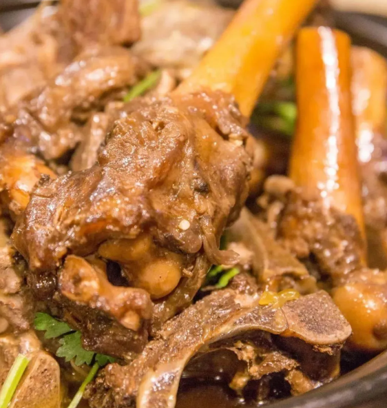 锅里浓浓的汤汁包裹着骨头显得“娇艳欲滴”,肉被煮的酥烂却劲道,从骨头上咬下来更是汁水满满,那扑面而来的香气钻进毛孔叫嚣着,勾得人口水直流。