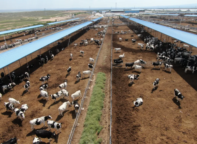 现代化生态牧场内,奶牛惬意地晒着“日光浴”,挤奶大厅内一头头奶牛有序接受自动化挤奶。而在泌乳牛舍里,全部安装了温控、湿控、喷淋自动化系统,工作人员坐在可视系统前就可以对牧场的每个生产环节一览无余。
