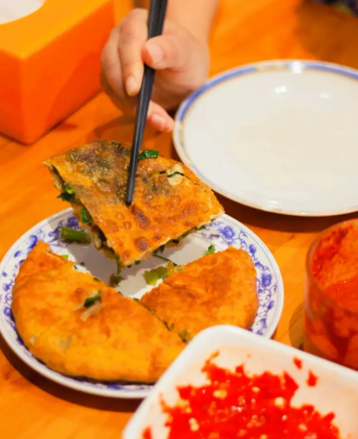 现场纯手工制作的牛肉饼,必须要排长队才能买到。刚出锅的牛肉饼色泽油润,外皮酥脆,咬一口,内里满满的馅料,牛肉和韭菜的香味冲入鼻腔,化作浓浓的食欲,让人一口接一口停不下来。