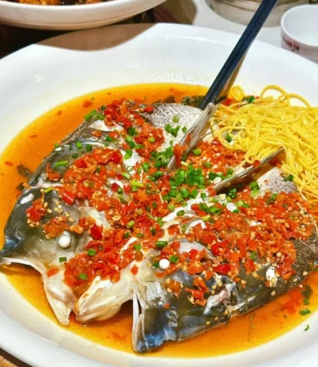 沙湖由于盛产鱼类,离景区不远的各种餐馆里,专门设有鱼宴。这家无论是清蒸鱼头,还是剁椒鱼头,肉质都是鲜嫩可口,既饱口福、又饱眼福。鱼头汤味嫩、鲜、肥、白、滑,食过回味悠长。
