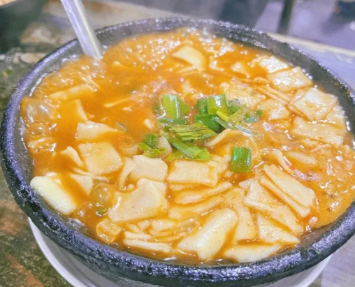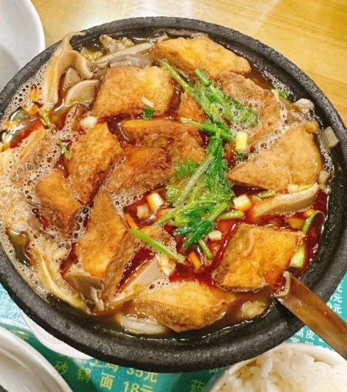中间是肉馅,两边夹的油炸的面,搭配粉条一锅气泡翻滚,蒸汽氤氲。自带江湖气的砂锅烩小吃上桌,可以瞬间把人的注意力吸引过来。