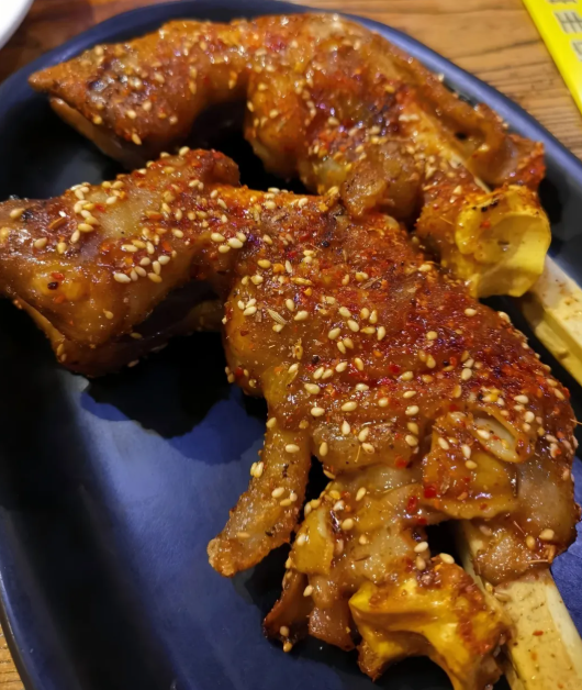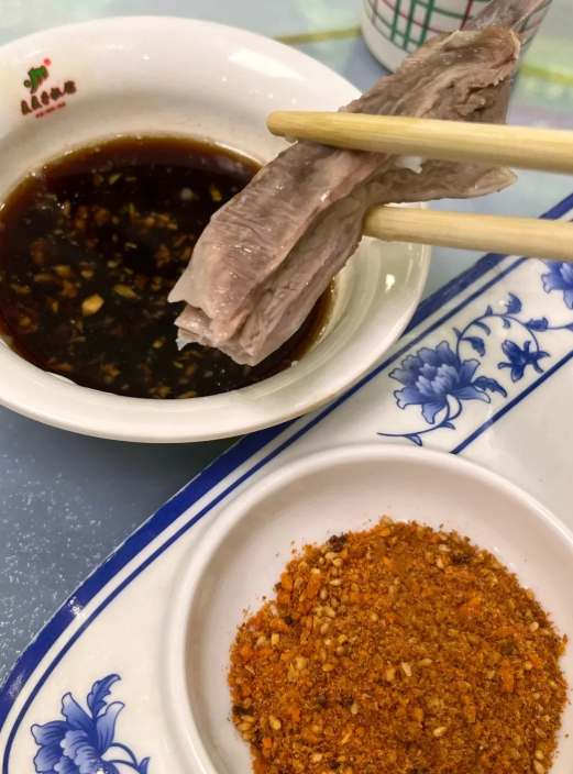 羊蹄在宁夏分为烤羊蹄和酱香卤羊蹄,烤羊蹄一般出现在夜晚的小摊和烧烤店里,煮好的羊蹄在碳火上炙烤一翻,裹上辣椒面、孜然面混合而成的秘制烧烤料,一口咬下去,外脆里嫩,配上一瓣生蒜去腥解腻。