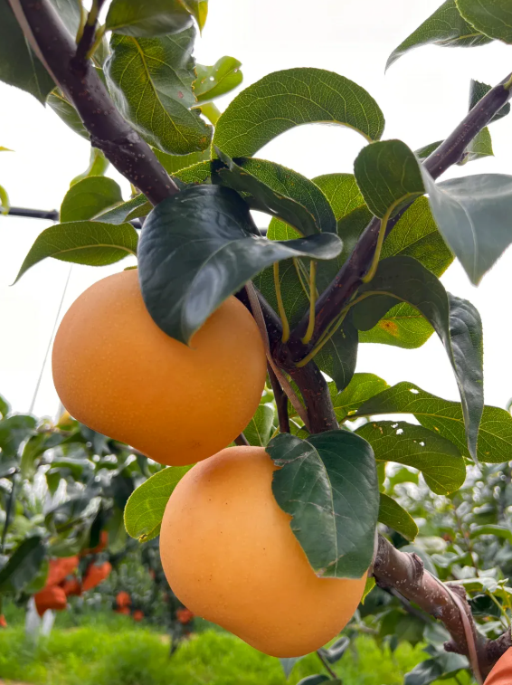 秋月梨每个个头都有拳头大小,外表圆润饱满,加上它鹅黄色的外皮,犹如捧在手心里的中秋之月,每年9月成熟,是许多人迫不及待品尝、送人的首选~