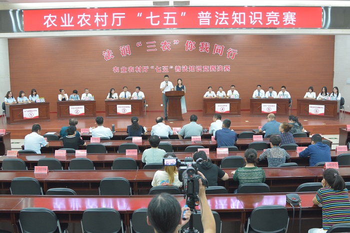 为深入贯彻落实习近平总书记全面依法治国新理念新思想新战略,推进法治宣传教育,进一步提高农业农村厅广大干部职工法治素养和依法行政能力,近日,农业农村厅举办了“七五”普法知识竞赛活动。8月14日,在初赛的基础上,选拔了六支代表队进行决赛。