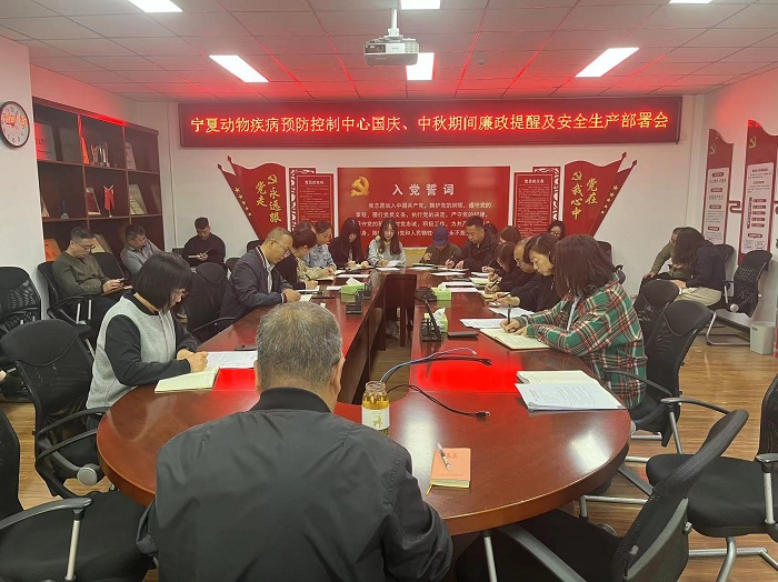为深入贯彻习近平总书记关于全面从严治党的重要论述,以及自治区党委、厅党组关于加强节日期间安全生产工作的要求,9月30日,自治区动物疾病预防控制中心组织召开全体职工大会,专题部署国庆、中秋“双节”期间廉政建设与安全生产各项工作。集中组织学习《习近平谈治国理政》第五卷中关于坚持和加强党中央集中统一领导、推进党的自我革命的重要论述。传达学习自治区安委会关于安全生产工作的通知、纠治“四风”工作提示函及违反中央八项规定精神典型问题通报,以案为鉴,强化警示震慑。