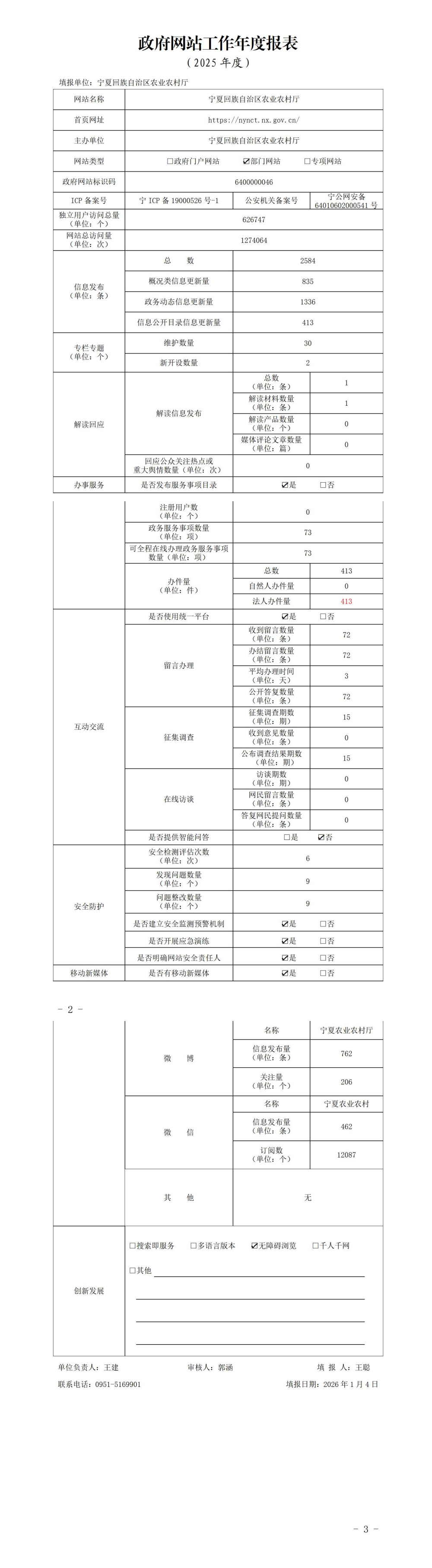 宁夏回族自治区农业农村厅政府网站工作2025年度报表