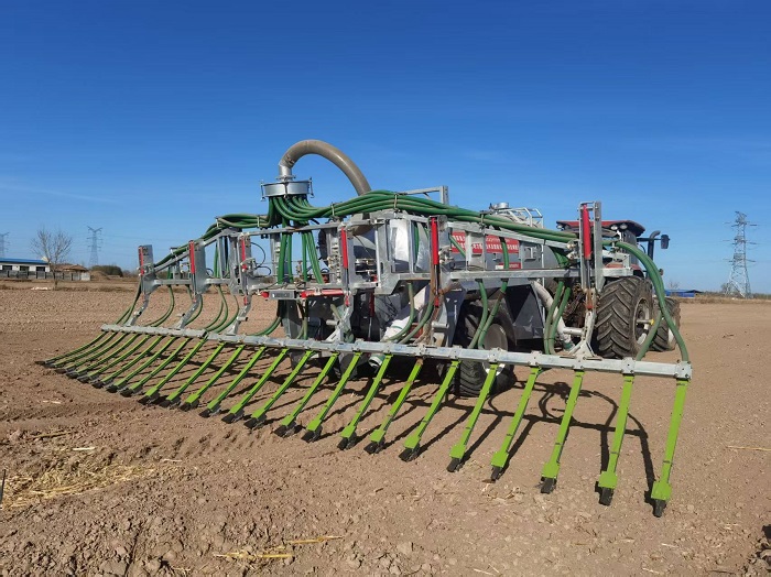 2FYQ-8型和2FYS-8型液态粪肥施肥设备由同一个罐体配备地表浅施和开沟深施两种尾部施肥机具,可便捷更换,兼容液态粪肥、沼液等多种流体,具备地表浅施和开沟深施功能,能够实现液态粪肥的混合防堵、均匀分配、开沟注肥、高效施用等多种功能,适用于冬春播施底肥、追肥等,单次作业可覆盖3公里半径区域,可实现液态粪肥即时还田,减少粪肥转运成本与二次污染风险,有效解决粪肥还田“最后一公里”问题。