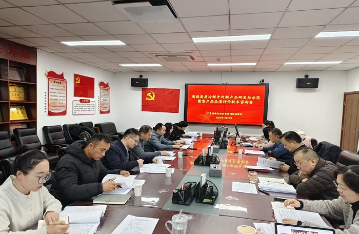 1月22日,自治区兽药饲料监察所组织召开高值高质冷鲜牛肉新产品研发与示范暨畜产品品质评价技术咨询会,特邀中国农业科学院农产品加工所、宁夏大学、宁夏农林科学院及牛肉加工企业的6名专家,为精准推进项目攻关与科室职能建设把脉定向、献计献策。